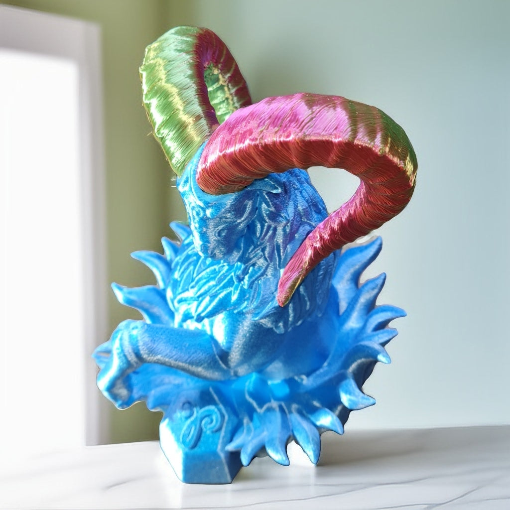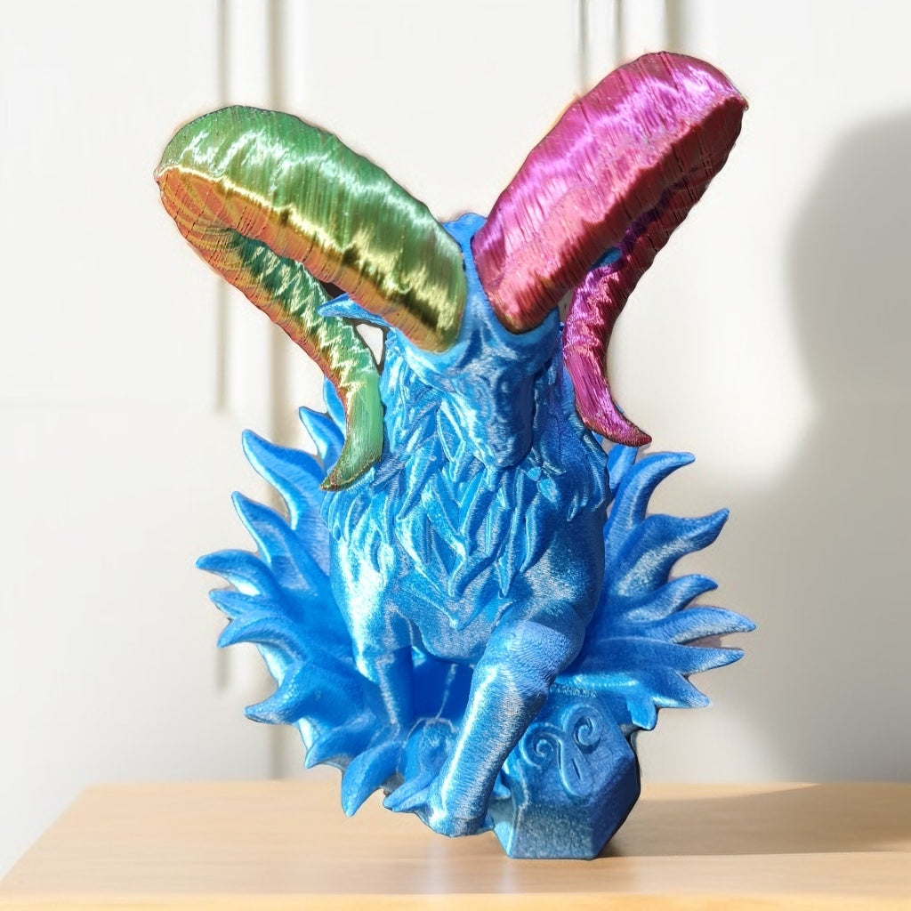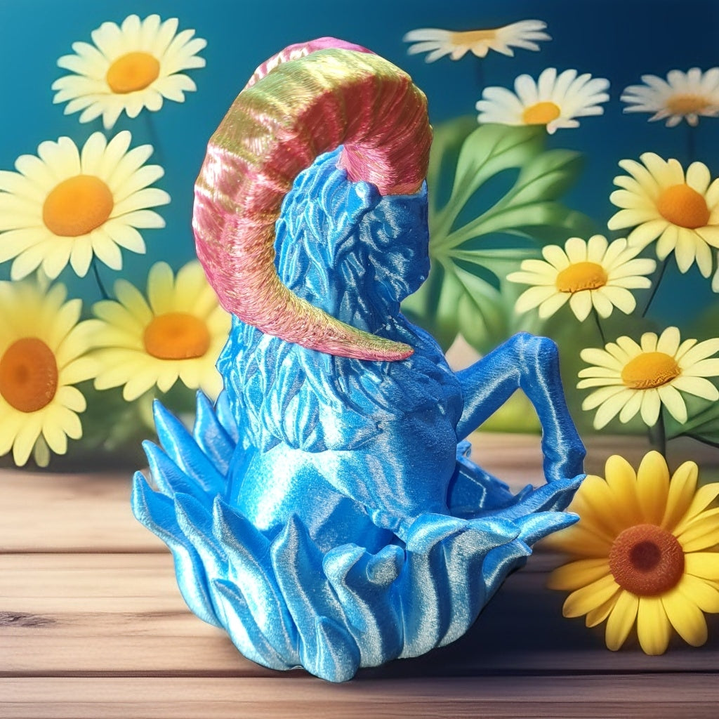 Signe astro bélier en impression 3d avec filament en amidon de maïs, soutien aux agriculteur, 129 x 132 x 196 mm ,12h de fabrication, Tiktok Fred3dpixel, envoyer un message pour les couleurs.