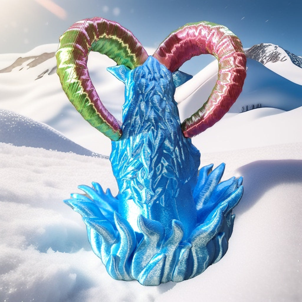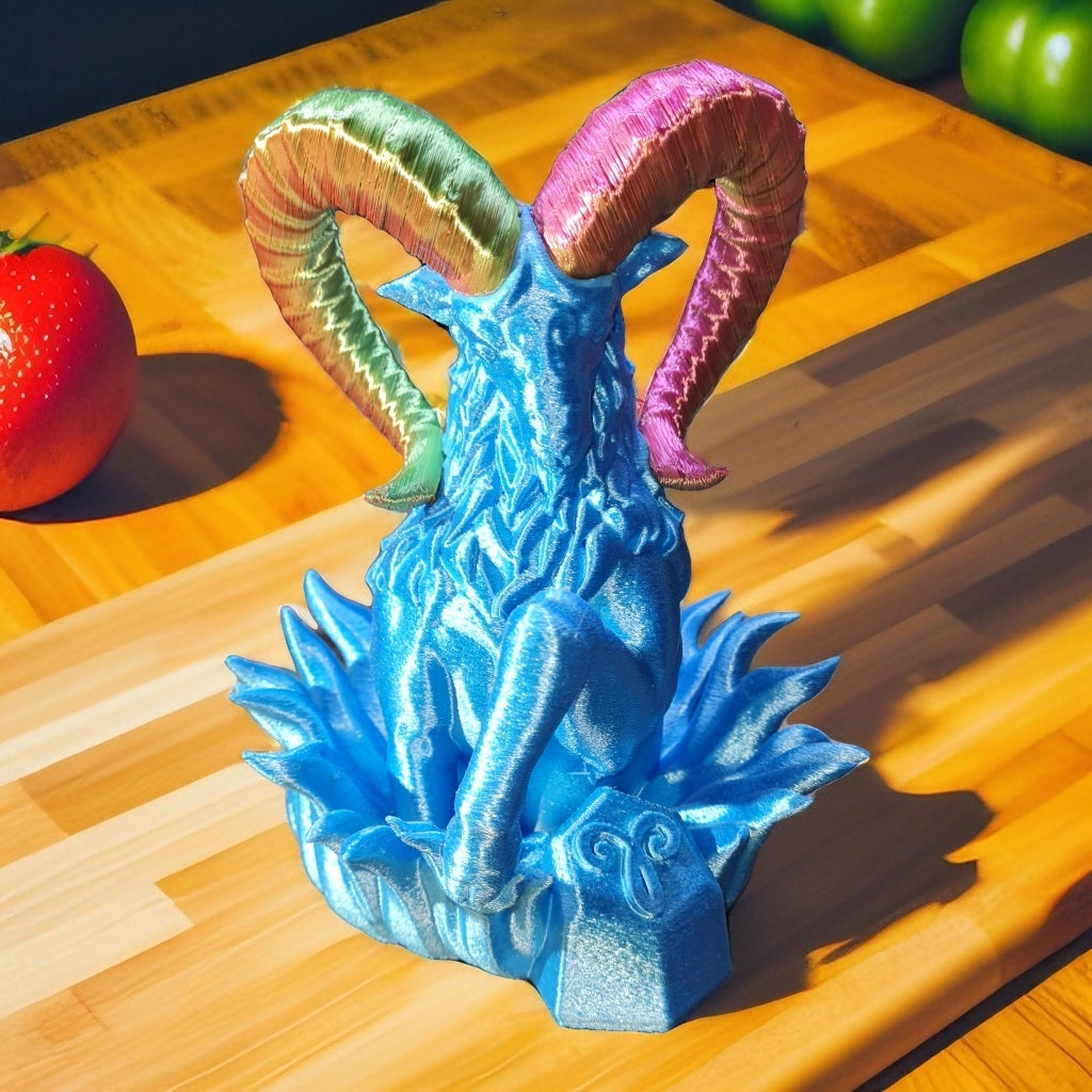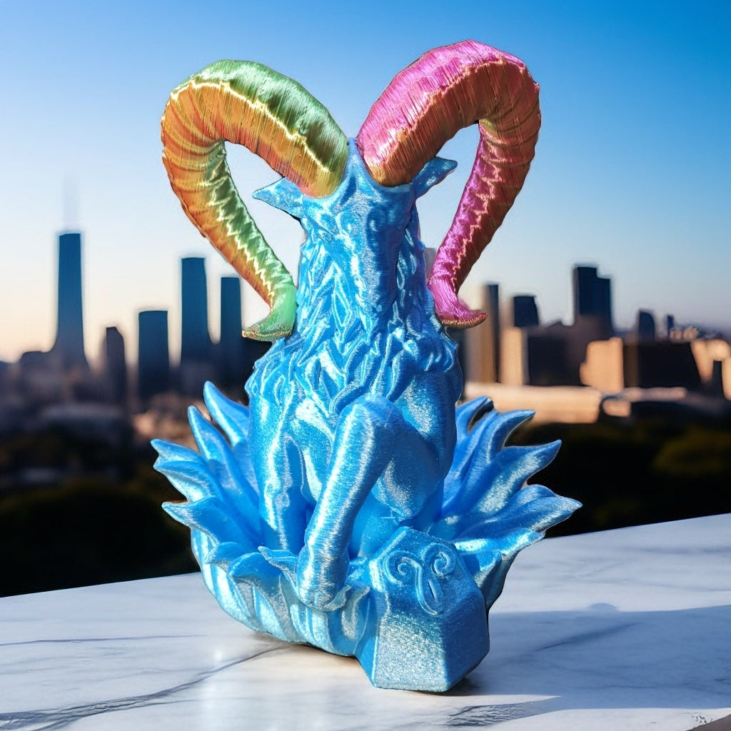 Signe astro bélier en impression 3d avec filament en amidon de maïs, soutien aux agriculteur, 129 x 132 x 196 mm ,12h de fabrication, Tiktok Fred3dpixel, envoyer un message pour les couleurs.