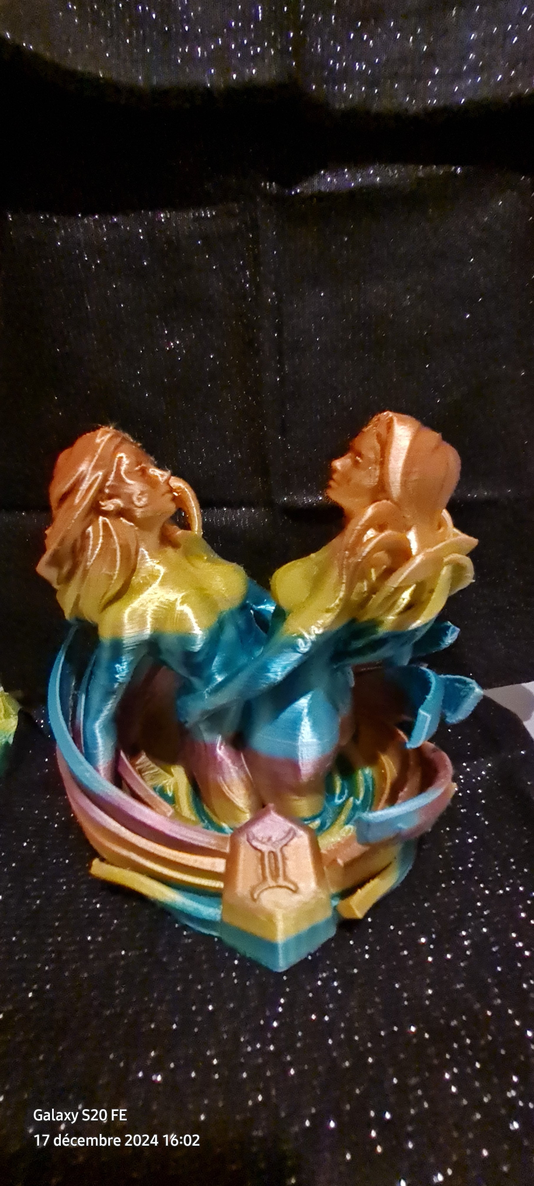 Signe astro gémeaux en impression 3d avec filament en amidon de maïs, soutien aux agriculteur, 155 x 135 x150 ,13h de fabrication, Tiktok Fred3dpixel, envoyer un message pour les couleurs.