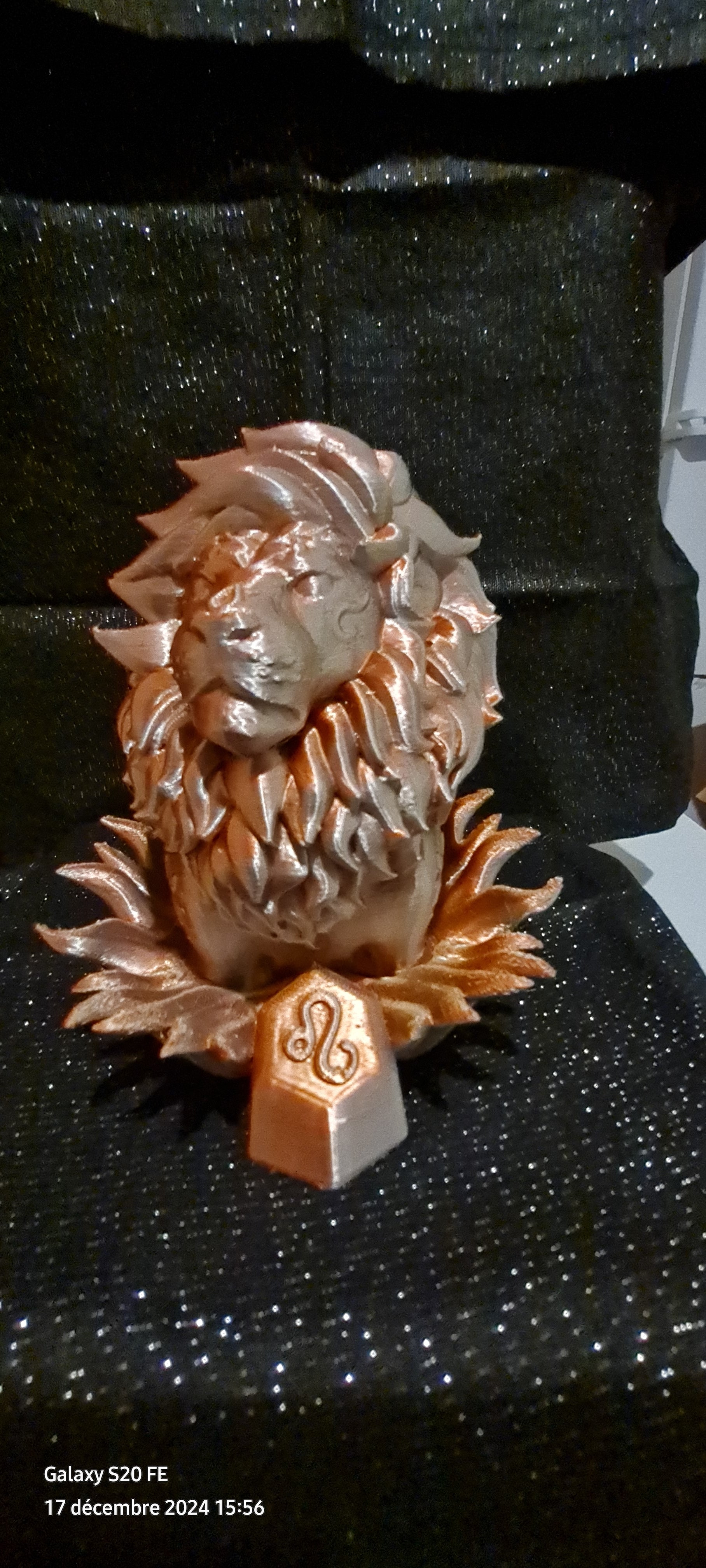 Signe astro lion en impression 3d avec filament en amidon de maïs, soutien aux agriculteur, 134 x 133 x 150 ,13h de fabrication, Tiktok Fred3dpixel, envoyer un message pour les couleurs.
