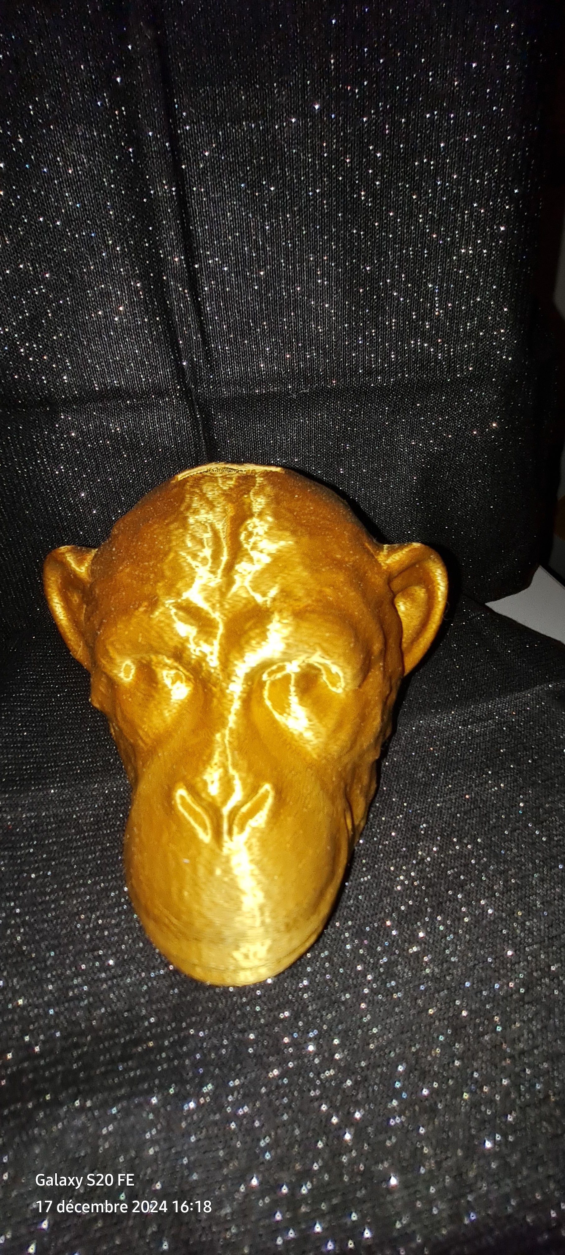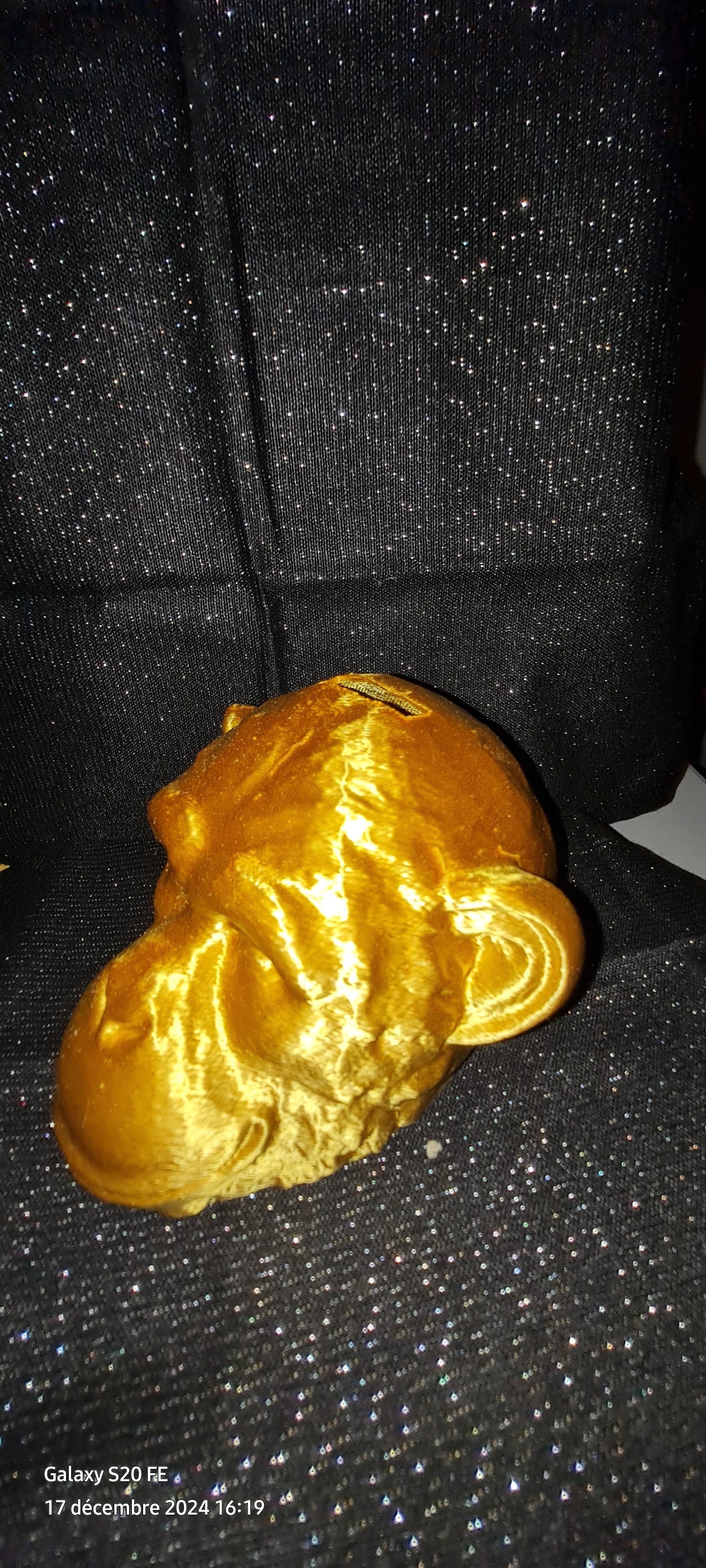 Tirelire singe en impression 3d avec filament en amidon de maïs, soutien aux agriculteur, 127 x 141 x105 ,12h de fabrication, Tiktok Fred3dpixel, envoyer un message pour les couleurs.